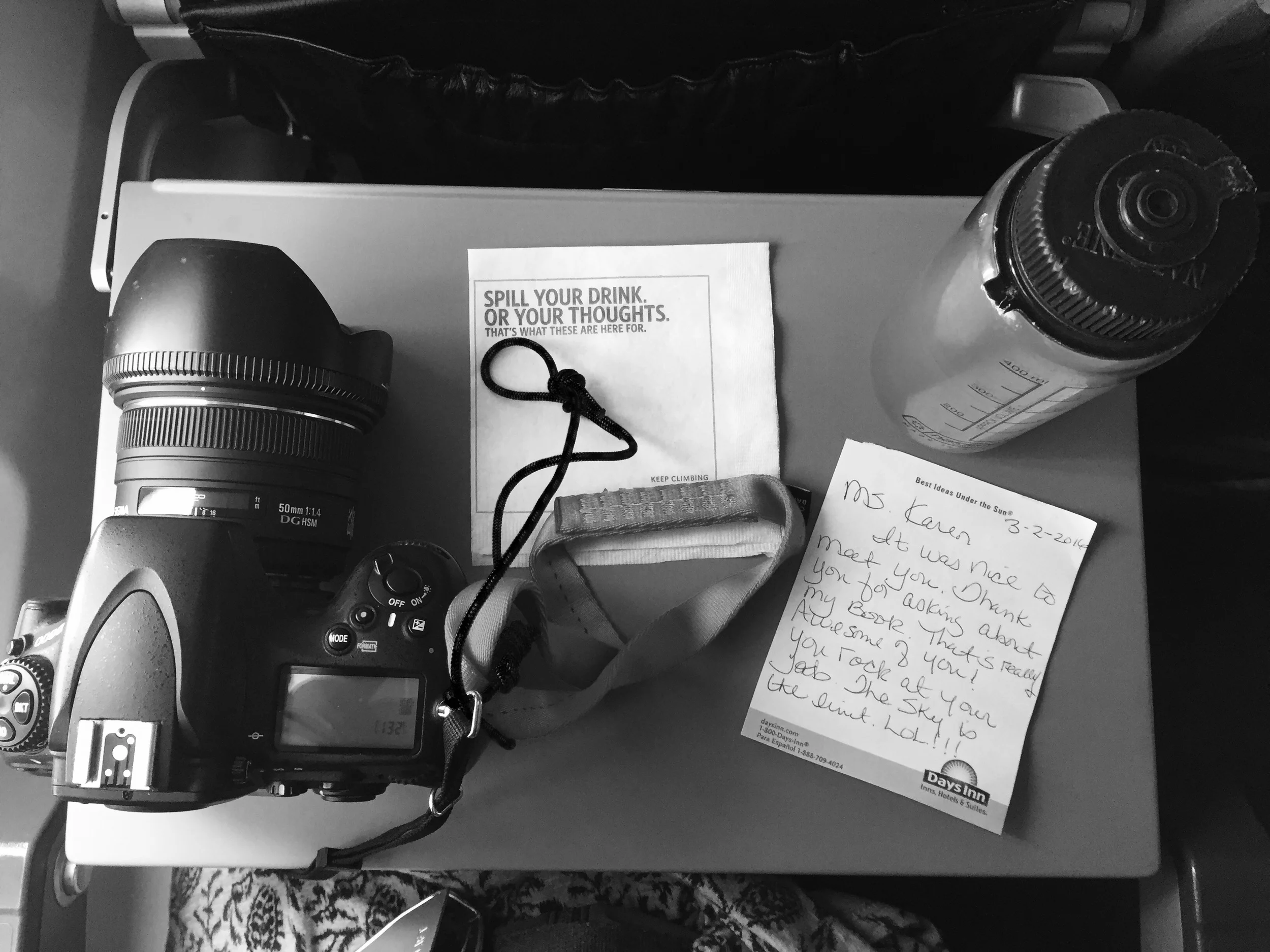 As we landed she slipped me a goodbye note and told me to "not be a stranger". The only sentence I could muster up while choking back tears was "thank you for your kindness. You are a beautiful human." I put my backpack on, and walked out of the plane and looked for her but she was nowhere to be found. She flitted into my life and slipped away with equal swiftness.